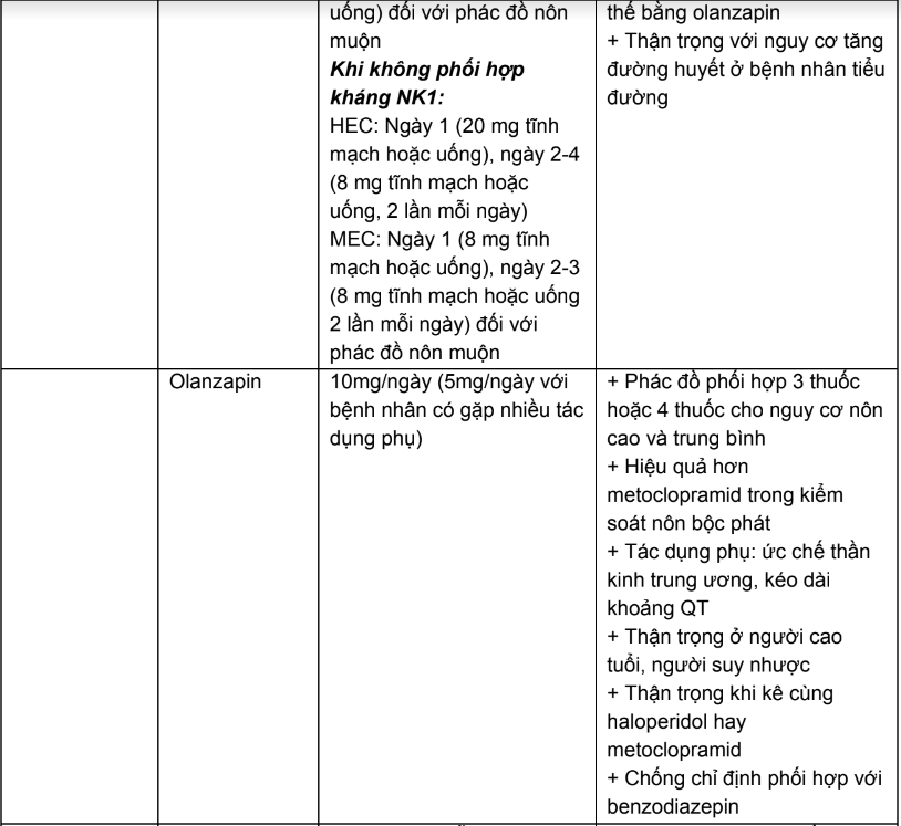 - Các hóa trị ung thư đều gây tác dụng không mong muốn nặng nề cho người bệnh, nên trong điều trị việc sử dụng thuốc/biện pháp dự phòng để giảm thiểu tác dụng không mong muốn của các hóa chất điều trị ung thư là rất quan trọng và cần được áp dụng đầy đủ.