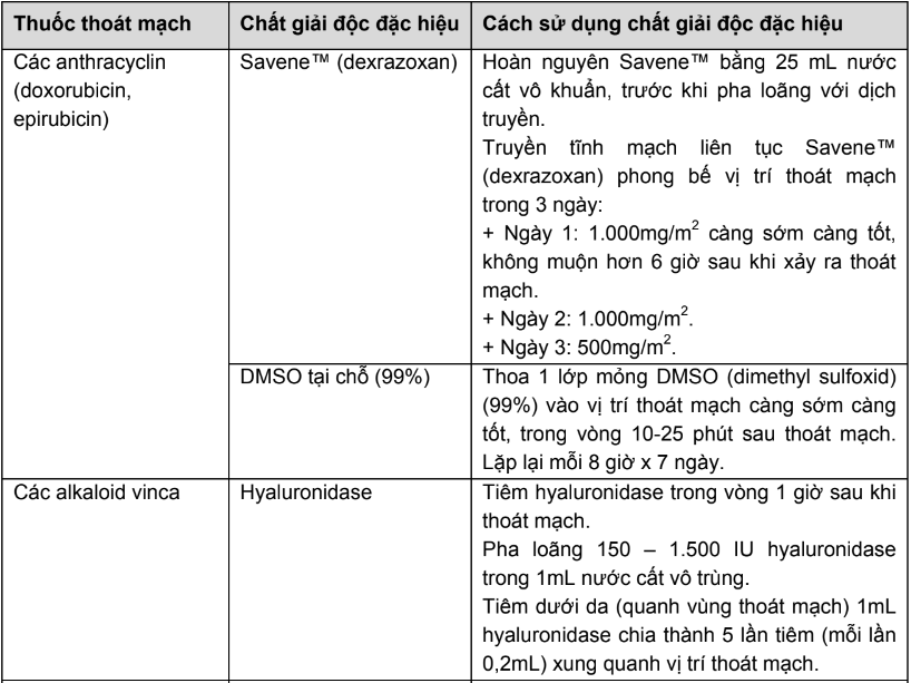 Trong phạm vi cuốn sách này xin hướng dẫn dự phòng, xử trí, chỉnh liều các tác dụng không mong muốn đặc trưng như: thoát mạch, dị ứng, nôn, buồn nôn, ỉa chảy, nổi mụn, giảm ba dòng (bạch cầu, hồng cầu, tiểu cầu), suy thận, suy gan, hội chứng bàn chân bàn tay của thuốc điều trị ung thư theo từng nhóm.