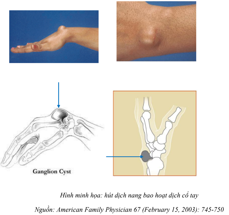- Hút dịch nang bao hoạt dịch khi nang có kích thước lớn gây mất thẩm mỹ hoặc chèn ép thần kinh, ảnh hưởng đến chức năng vận động khớp, hoặc có dấu hiệu nhiễm khuẩn bội nhiễm