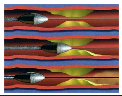 Hình 2. Hình ảnh mô tả quy trình mũi khoan bào mòn mảng xơ vữa vôi hóa