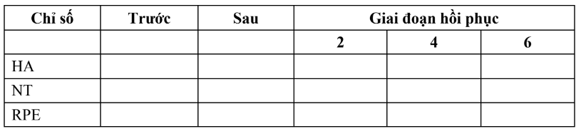 Các chỉ số sinh lý theo dõi trước, sau và giai đoạn hồi phục