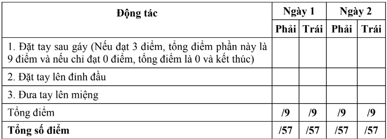 - 0 điểm: không thực hiện được động tác.