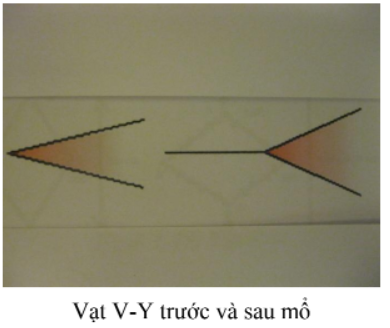 - Tịnh tiến vạt chữ V về phía khuyết tổ chức, phần đỉnh nhọn chữ V sẽ được khâu kín, như vây chữ V chuyển thành chữ Y.