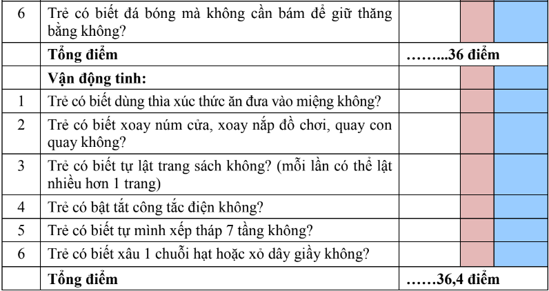 - Lĩnh vực vận động tinh < 36,4 điểm