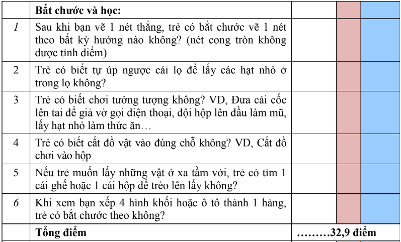 - Lĩnh vực bắt chước và học < 32,9 điểm