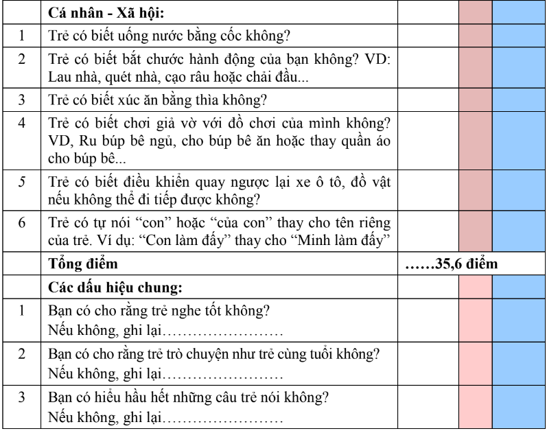 - Lĩnh vực cá nhân xã hội < 35,6 điểm.