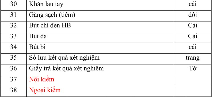 2.2. Dụng cụ, hóa chất và vật tư tiêu hao (bao gồm nội kiểm, ngoại kiểm)