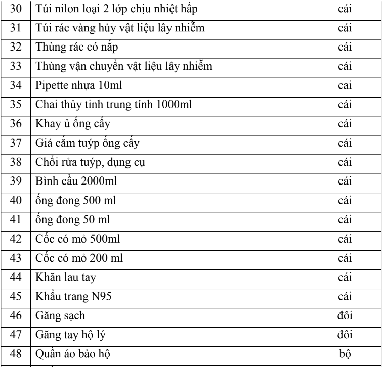 2.2. Dụng cụ, hóa chất và vật tư tiêu hao (bao gồm nội kiểm, ngoại kiểm)