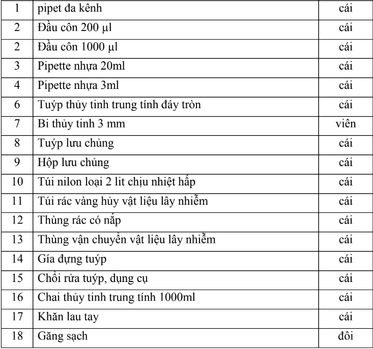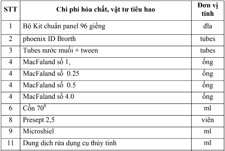 2.2. Dụng cụ, hóa chất và vật tư tiêu hao (bao gồm nội kiểm, ngoại kiểm)
