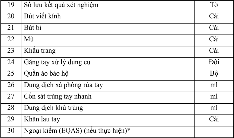 2.2. Dụng cụ, hóa chất và vật tư tiêu hao (bao gồm nội kiểm, ngoại kiểm)