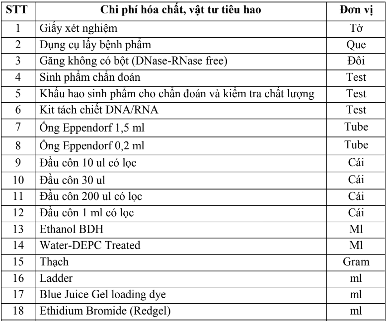 2.2. Dụng cụ, hóa chất và vật tư tiêu hao (bao gồm nội kiểm, ngoại kiểm)