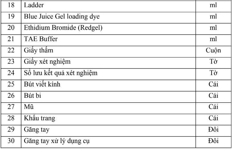 2.2. Dụng cụ, hóa chất và vật tư tiêu hao (bao gồm nội kiểm, ngoại kiểm)