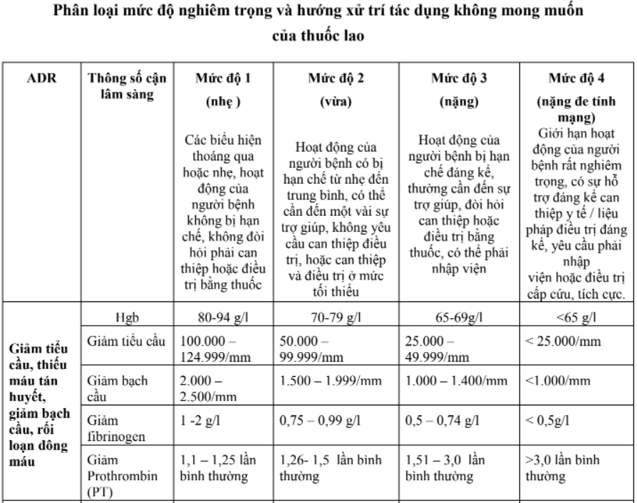 2. Phân loại mức độ tác dụng không mong muốn của thuốc lao (WHO):