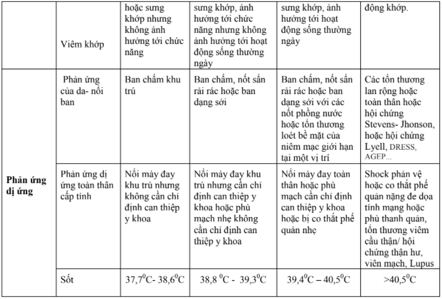 - Mức độ 1: Thoảng qua hoặc khó chịu nhẹ (<48 giờ), không yêu cầu can thiệp y tế/liệu pháp điều trị.