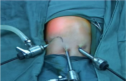 - Trocar thứ nhất cho ống soi ở khoang liên sườn 3 đường nách giữa.