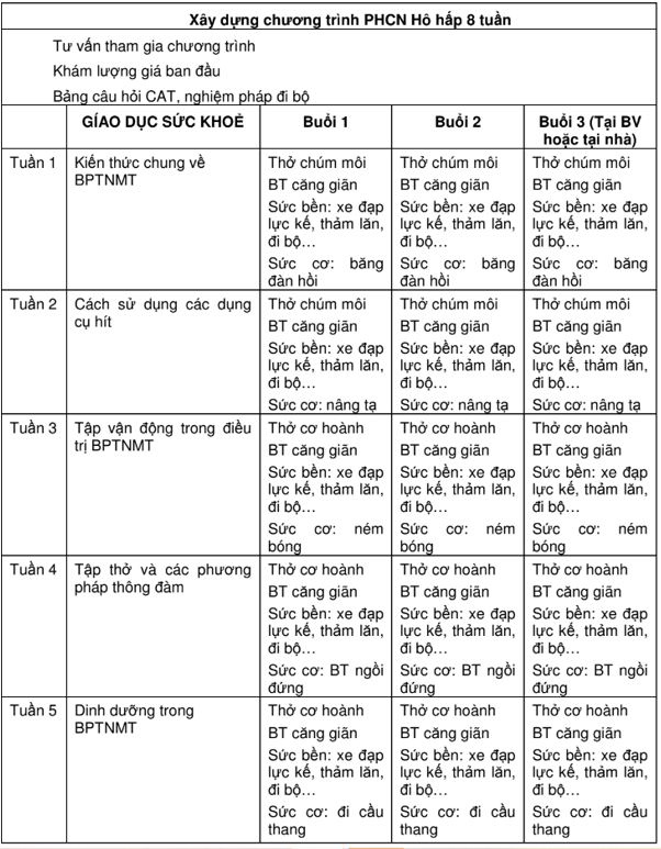 5.2. CÁC THÀNH PHẦN CỦA CHƯƠNG TRÌNH PHCN HÔ HẤP