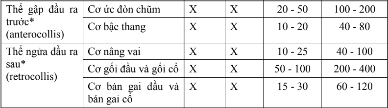 - Xác định thể rối loạn trương lực cơ cổ: thể xoay đầu - thể nghiêng sang bên - thể cúi ra trước - thể ngả ra sau hoặc thể phối hợp.