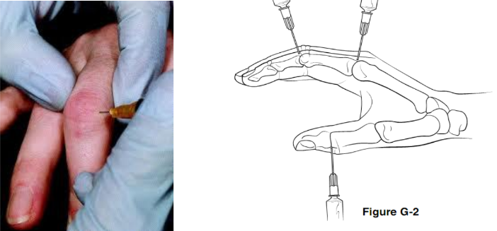 Hình minh họa: tiêm khớp đốt ngón tay. nguồn: internet