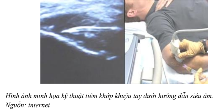 Ngày nay, ứng dụng các phương tiện chẩn đoán hình ảnh vào kỹ thuật tiêm khớp, cho phép thầy thuốc lựa chọn tối ưu các kỹ thuật tiêm khớp phù hợp với từng vị trí khớp. Ngoài tiêm khớp theo phương pháp kinh điển, còn có tiêm khớp dưới màn huỳnh quang tăng sáng, tiêm khớp dưới hướng dẫn siêu âm. Trong đó tiêm khớp dưới hướng dẫn siêu âm đảm bảo tính an toàn, chính xác và kinh tế. Khớp khuỷu tay có cấu tạo phức tạp, gần vị trí thần kinh trụ, nên lựa chọn tiêm khớp theo phương pháp dưới hướng dẫn siêu âm sẽ đảm bảo tính an toàn và chính xác cao.
