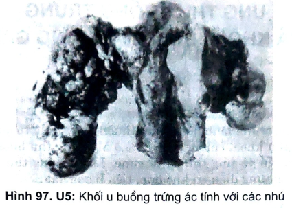 - Kích thước khối u tiến triển nhanh, mật độ khối u chắc, di động hạn chế và u phát triển cả hai bên buồng trứng.