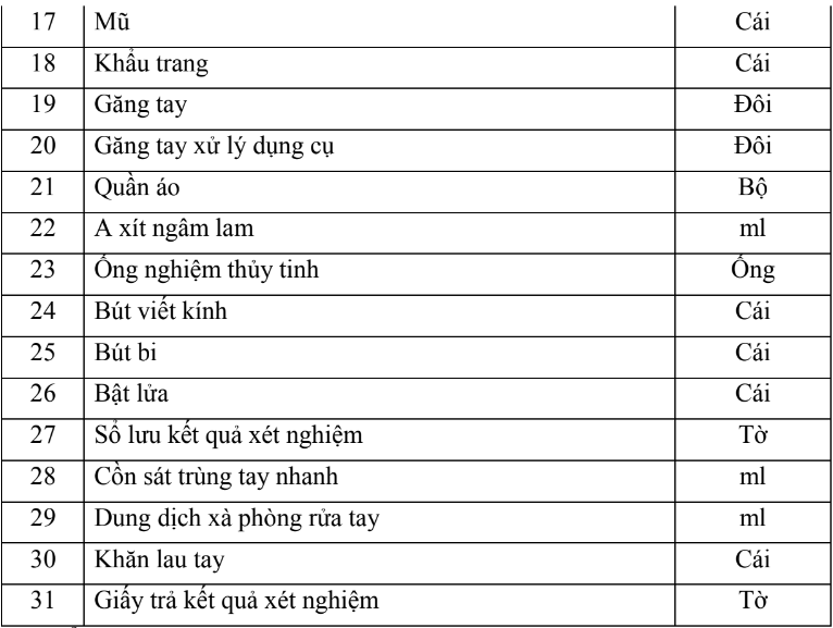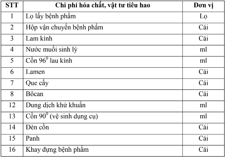 2.2. Dụng cụ, hóa chất và vật tư tiêu hao (bao gồm nội kiểm, ngoại kiểm)