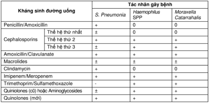 - Với thể trung bình và gần đây không sử dụng thuốc kháng sinh, nên sử dụng amoxicillin/clavulanate hoặc cefpodoxime, cefuroxime hoặc cefdinir. Nếu người lớn dị ứng với β-Lactam thì nên dùng TMP/SMX, doxycycline hoặc macrolide và trẻ em dị ứng β-Lactam nên sử dụng TMP/SMX hoặc macrolide. Tuy nhiên tỉ lệ thất bại với thuốc kháng sinh không phải nhóm β-Lactam có thể tới 25%.