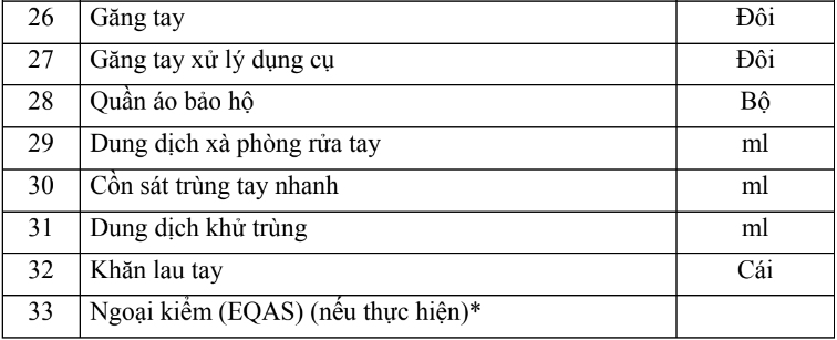 2.2 . Dụng cụ, hóa chất và vật tư tiêu hao (bao gồm nội kiểm, ngoại kiểm)