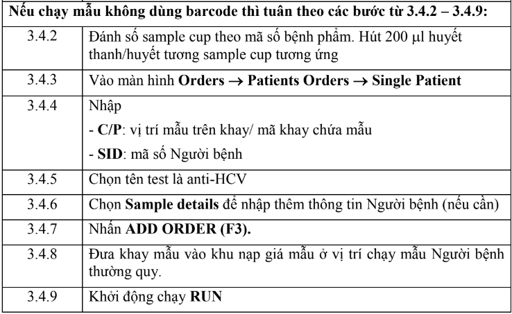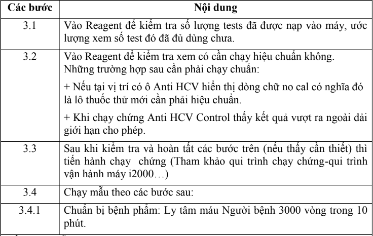 Các bước tiến hành thực hiện theo phương tiện, hóa chất ví dụ sử dụng sinh phẩm bộ sinh phẩm Architect Anti-HCV ho c sử dụng sinh phẩm tương đương.