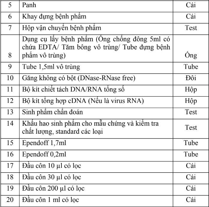 - Các loại bệnh phẩm nghi ngờ nhiễm virus cần tìm