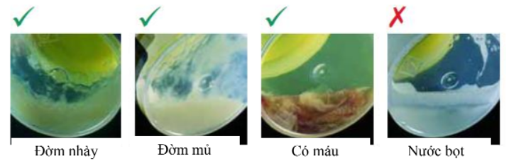 - Bệnh phẩm đờm đạt chất lượng: có nhày mủ, thể tích mẫu ít nhất 2 ml.