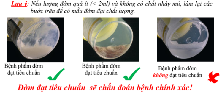 - Đảm bảo đờm đạt chất lượng (ít nhất 2 ml, có nhày mủ).